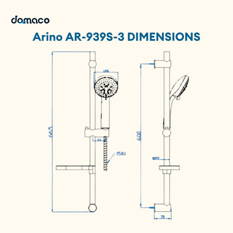 Upgrade your shower experience with the ARINO AR-939S-3, a premium 3-function hand shower head set crafted from durable stainless steel and ABS. Designed with a sleek rail and sliding rod, it offers convenience, style, and long-lasting performance.